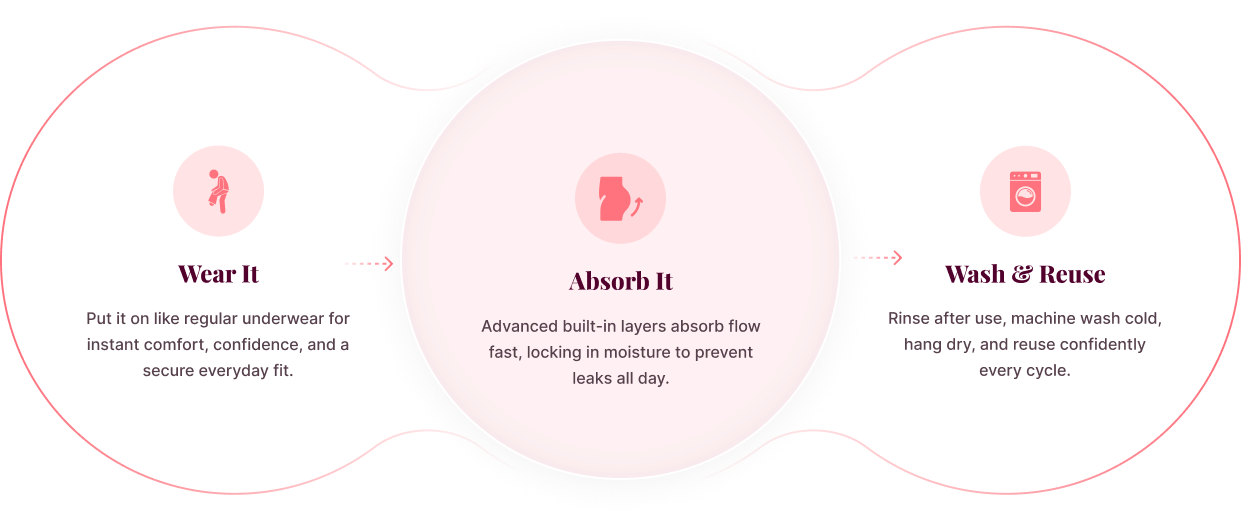 “Easy to wash, reusable, and dependable. A smarter, more comfortable alternative to pads and disposable products.”